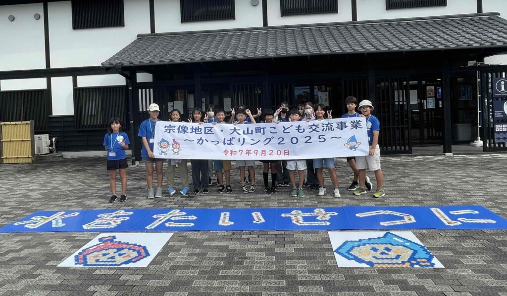 令和7年9月20日(土曜日)、福津市の津屋崎千軒なごみにて、「宗像地区・大山町こども交流事業~かっぱリング2025~」を開催し、宗像市および福津市と大分県日田市大山町の小学5~6年生、計16人が参加しました。